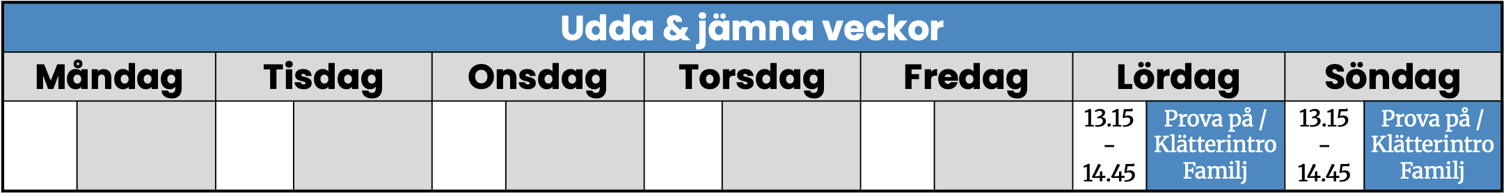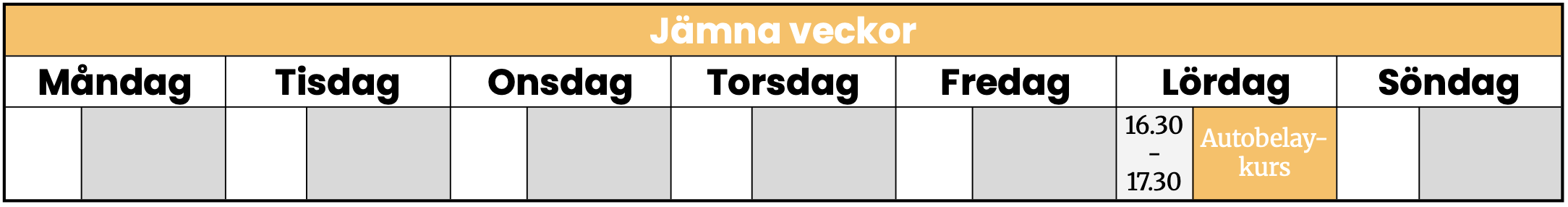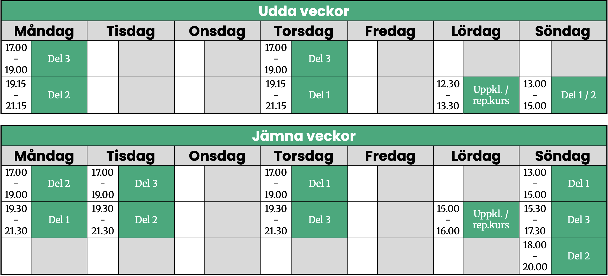 Vi har fasta tider under veckan för några av våra kurser, scrolla ned för schema. Vid kontakt uppge: