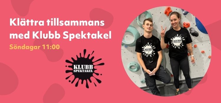 Klubb Spektakel samt Klättercentret Västerås bjuder in till att klättra och umgås tillsammans på söndagar. För klättring är helt amazing tillsammans! Nya samlas i entrén tillsammans med Ling, som er värd, 10.40-11.00 och registrerar nya deltagare.